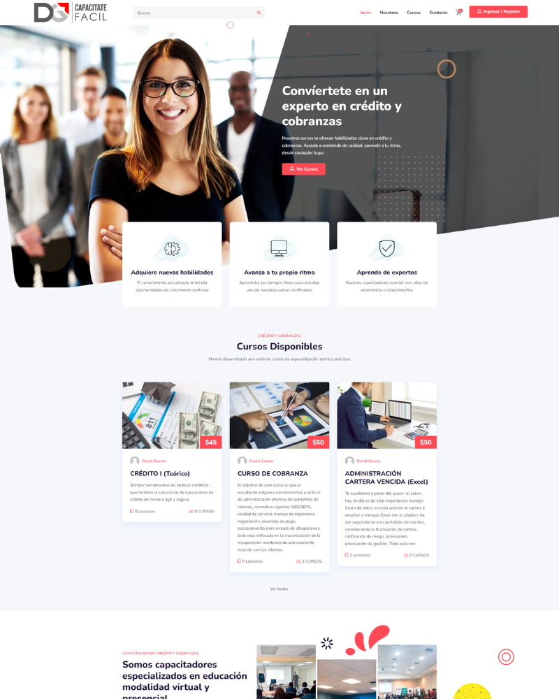 Diseño de páginas web para E-learning. Vende tus cursos o clases en Internet creando tu propia plataforma o academias online de última generación: cursos online de pago, exámenes y tests, certificados…